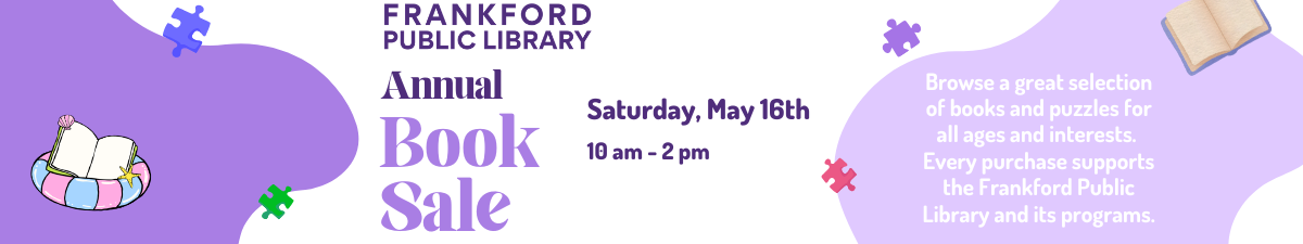 Every purchase directly supports the Frankford Public Library and helps us continue to provide vital programs, resources, and services for our community. Whether you are searching for your next great read or want to give back, we invite you to stop by and be part of this important fundraiser.
